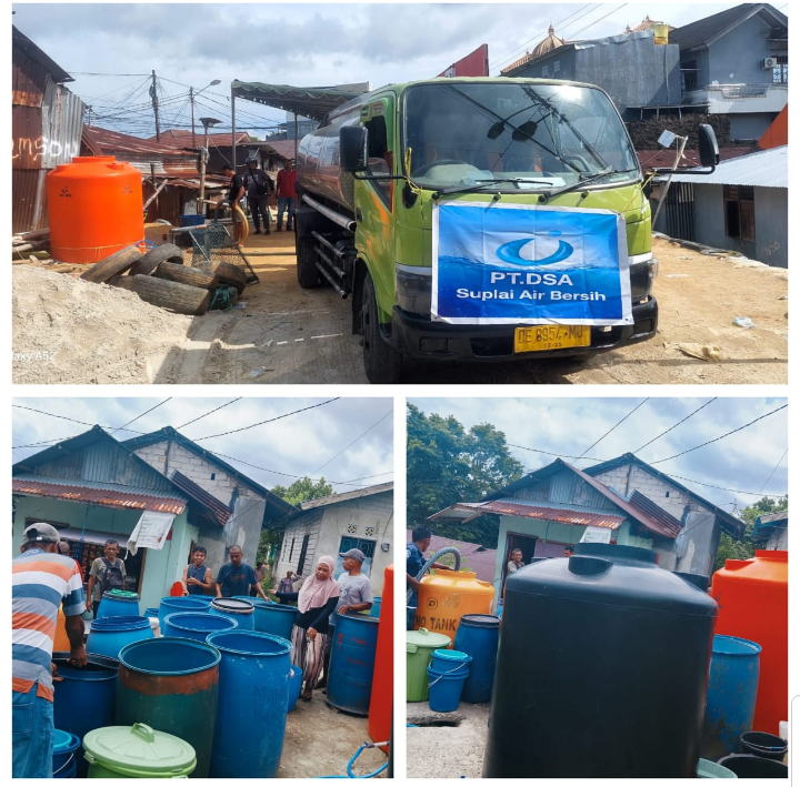 Di tengah berlangsungnya proses perbaikan, PT Dream Sukses Airindo juga menyalurkan bantuan air bersih menggunakan armada mobil tangki ke 14 rayon terdampak. Pendistribusian air dilakukan secara bergilir di masing-masing rayon dan dikoordinasikan bersama RT/RW setempat guna memastikan kebutuhan dasar masyarakat tetap terpenuhi. Hingga saat ini, penyaluran air tangki masih terus berlangsung.